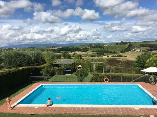 [English translation courtesy of Easy Reserve] I can only recommend the holiday home Cerretini. Very cheap in the off season and beautiful. The house has a lovely large garden with great view and you can easily reach Montepulciano, Siena or Perugia. I recommend this house especially to large groups. We were twelve people and we had rented the two units. The lower apartment is big enough that you can eat all together and there are even nearly enough sun loungers for everyone. Moreover the owners are very kind. I can recommend this house even to young people. We received a very warm welcome.Vil du anbefale denne ejendom til en ven? Ja