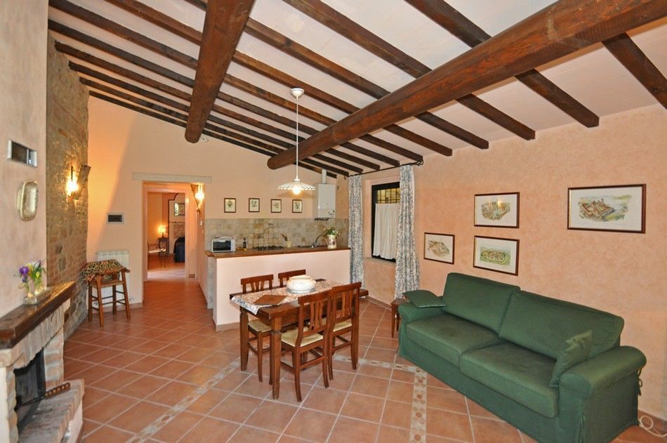 PINO and MANDORLO are in two separate buildings, but are in any case close by and they too have equipped, outdoor spaces. The OLIVO and ABETE apartments (in the farmhouse's converted stalls) are also attached, and ideal for couples or small families who wish to be near to each other (outdoor spaces equipped with table and lounge chair).