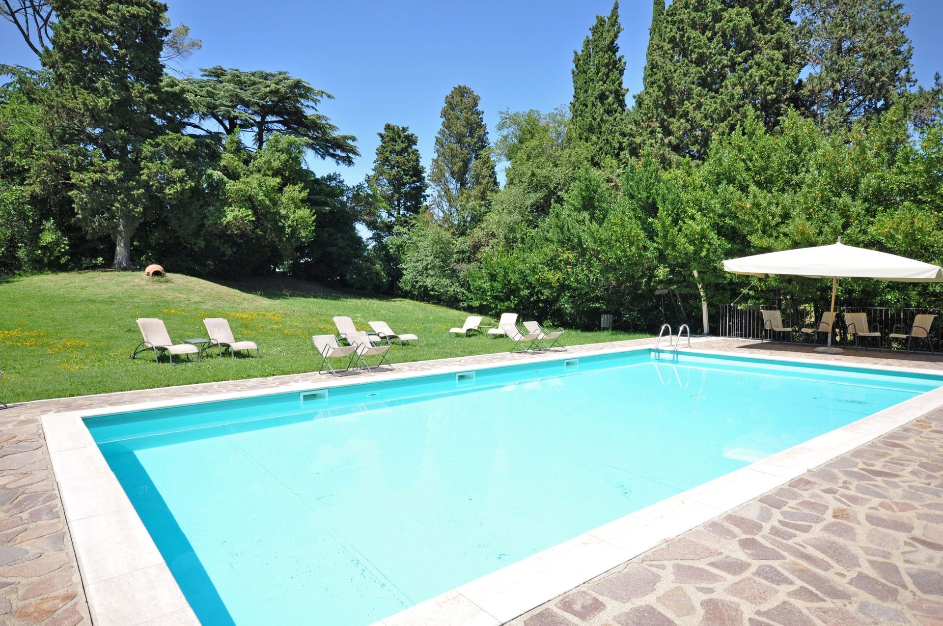Spazzavento is a characteristic Tuscan country house dating back to the end of the 1700s. It has been renovated and converted into 6 apartments, while retaining the old country house's original details. Originally intended as the summer residence for Benedictine monks of the "Servi di Maria" order, Spazzavento sits in a tranquil position overlooking Monte Cetona and the surrounding hills. A splendid park of centuries-old trees frames the pool, where guests can relax after exploring the nearby historic towns and medieval hamlets such as Cetona, San Casciano dei Bagni (affiliated with Fonteverde Thermal Spa), Città della Pieve, Chiusi, Montepulciano and Pienza. From the nearby train station in Chiusi there are convenient connections to Florence, Siena, Orvieto and Rome. Access to the A1 motorway (Milan- Naples) is about 15 km away.