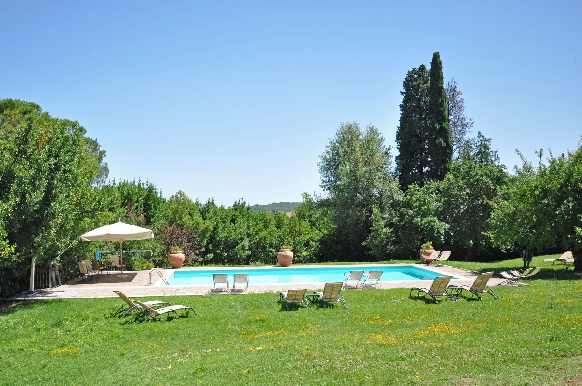 Distances: Piazze with shops of all kinds 2 km away, San Casciano dei Bagni (renowned thermal springs) 9 km, Cetona 10 km away, Chiusi (train station) 15 km, Montepulciano 35 km away, Orvieto 40 km, Pienza 50 km away, Perugia 50 km, Assisi 75 km away, the Tuscan coast (Maremma and Argentario) about 110 km, Florence 160 km, Rome 160 km away.