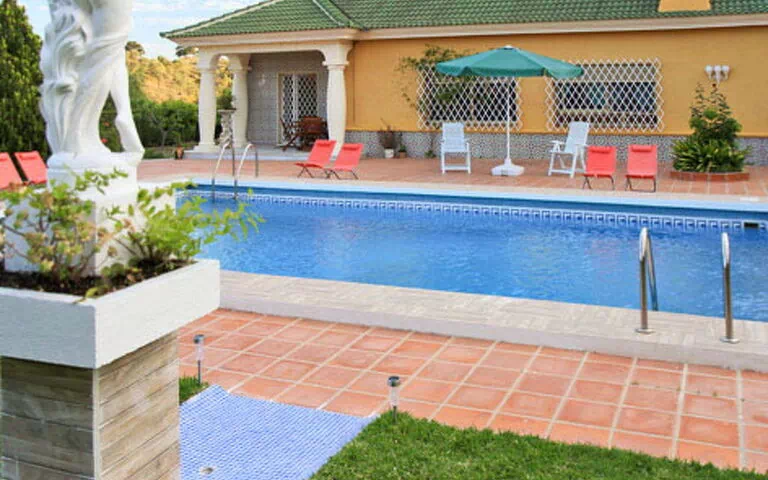 Stor, smuk hus "La Poza". Uden for byen, 16 km fra bymidten af Málaga, rolig, solrige beliggenhed på en bakke, 16 km fra havet, 16 km fra stranden, i en blind vej, i det grønne. Til alene benyttelse: grund (indhegnet), have 1'600 m2 med græsplane og blomster, pool (6 x 9 m, 130 - 195 cm dyb, Sæsonbestemt tilgængelighed: 01.Jan. - 31.Dec.). Udendørs brus, havemøbler, grill, parkeringsplads (for 4 biler) ved huset. Indkøbsforretning 3 km, restaurant 3 km, bar 3 km, busstoppested "El Cortijuelo L-21" 1.5 km, sandstrand 16 km. Bemærk venligst: bil anbefales. Ejeren bor i et separat parcelhus. Motorvej 1.5 km fra huset.