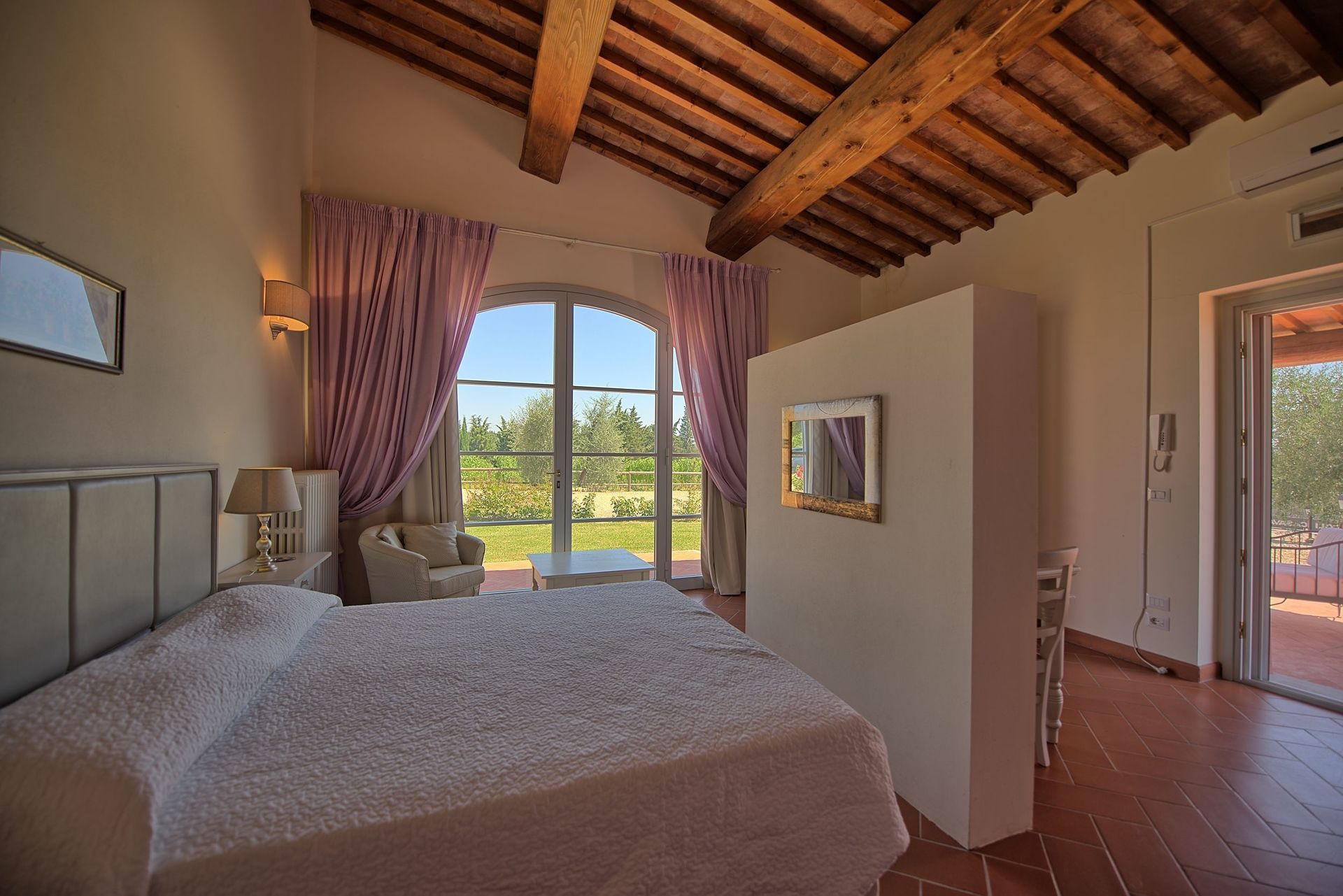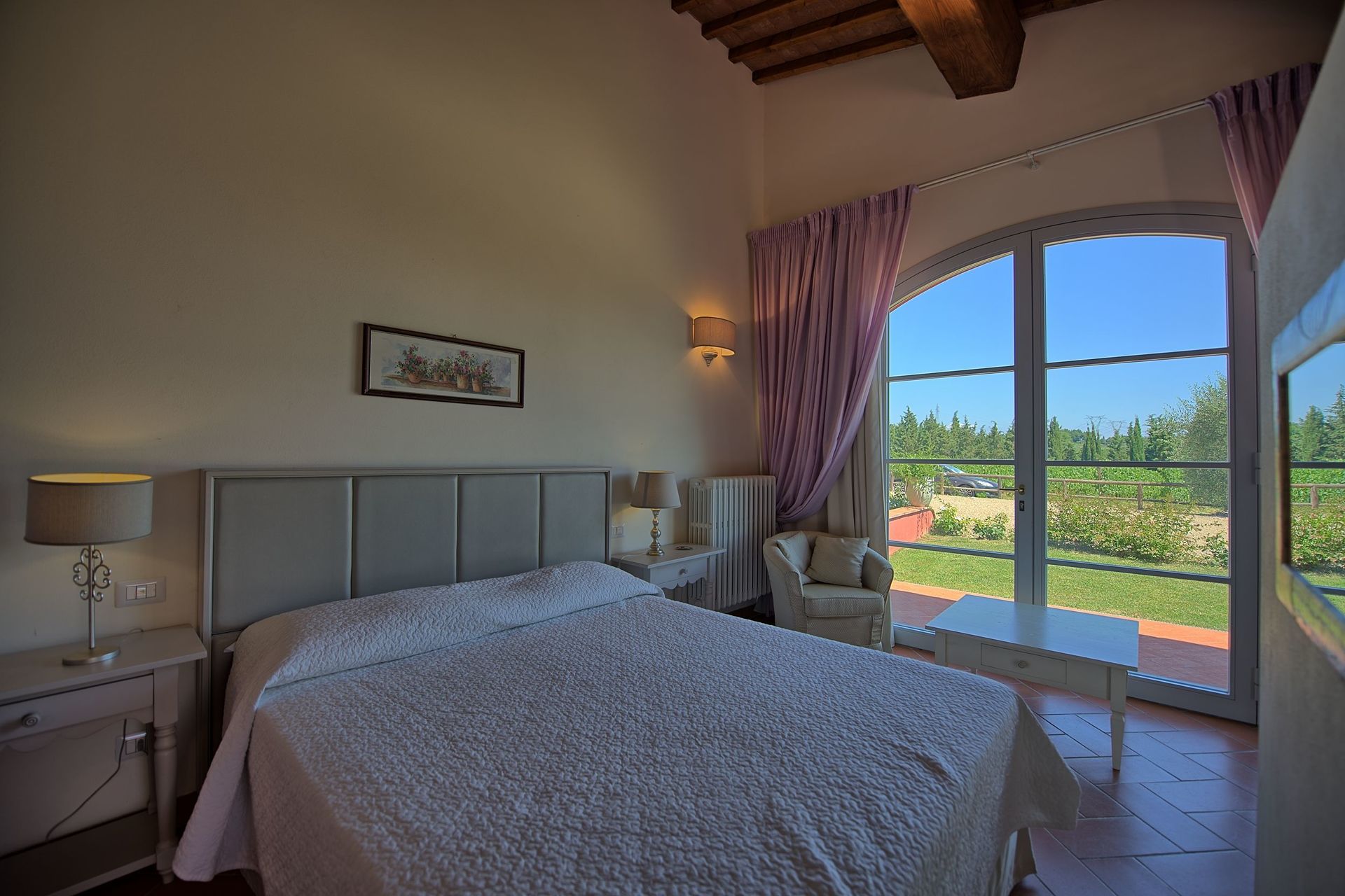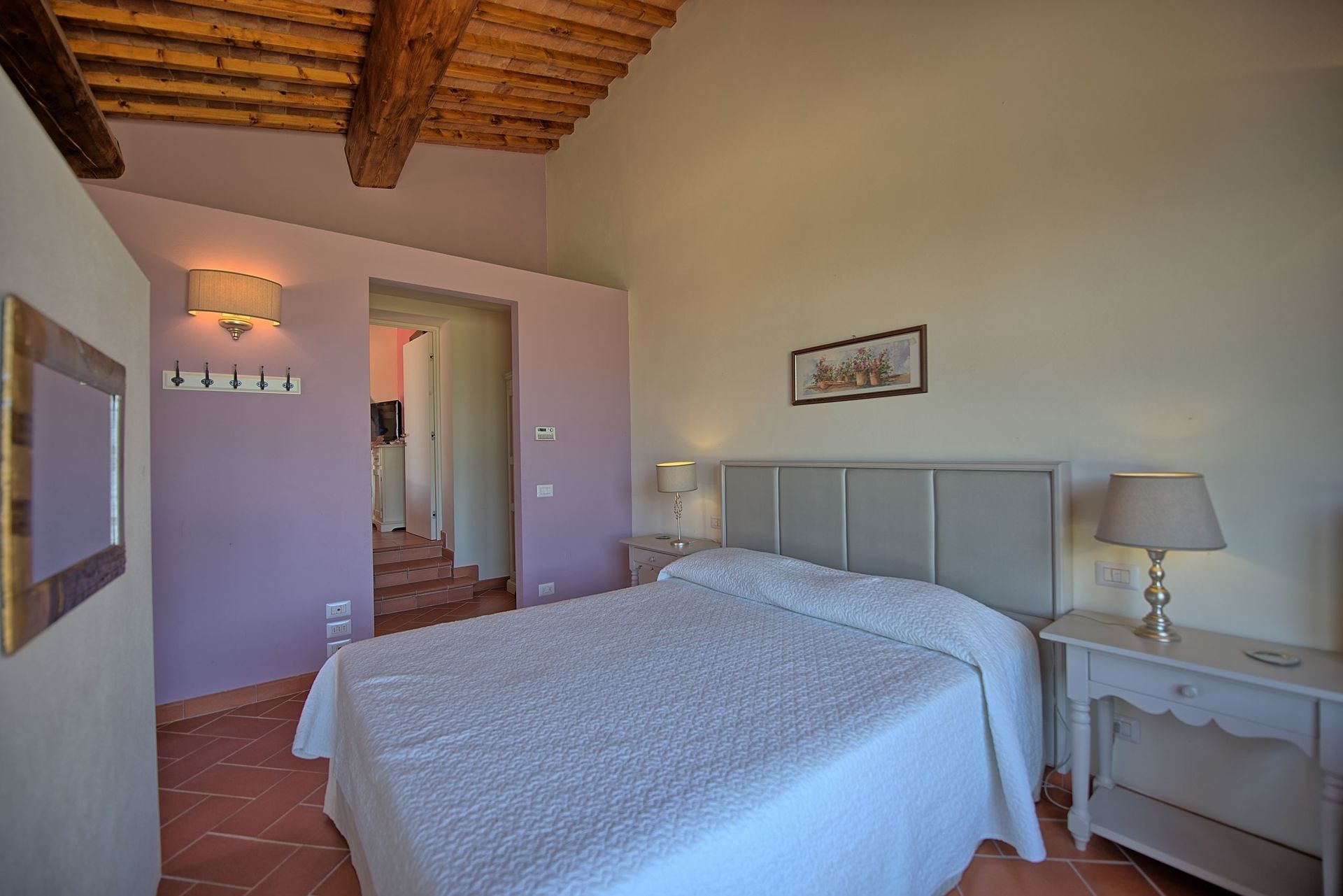 3 steps lower: large double bedroom with ensuite bathroom with shower and direct access on to the outside.