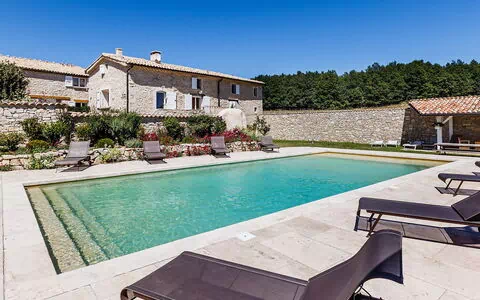 Redortiers 13 km from Banon: Farm estate "Aubignane La Bergerette de Pierroun", from the 19th century, renovated in 2011, surrounded by trees and fields. 7 houses in the resort. Outside the resort, in a secluded position on top of a hill, in the countryside. For shared use: park 350 ha (fenced), well-kept garden 2 ha (fenced) with lawn and trees, swimming pool angular (15 x 8 m, depth 100 - 160 cm, 15.05.-15.09.) with internal staircase. Boccia, arbour (20 m2), terrace. In the house: washing machine, tumble dryer (for shared use, extra). Breakfast possible on request (extra). Motor access to 200 m from the house (via unmade road). In Winter: please take snow chains. Parking on the premises. Shop 13 km, supermarket 15 km, restaurant 13 km, bar 6 km, railway station "Avignon" 115 km. Nearby attractions: Apt 40 km, Manosque 45 km, Cavaillon 74 km, Avignon 95 km, Parc Naturel Régional du Lubéron, Parc Naturel Régional du Verdon. Please note: car recommended. Suitable for families, baby equipment on request (included). Animals in the neighbourhood. There are more similar properties for rent in this same residence. All houses/apartments are individually designed/furnished.