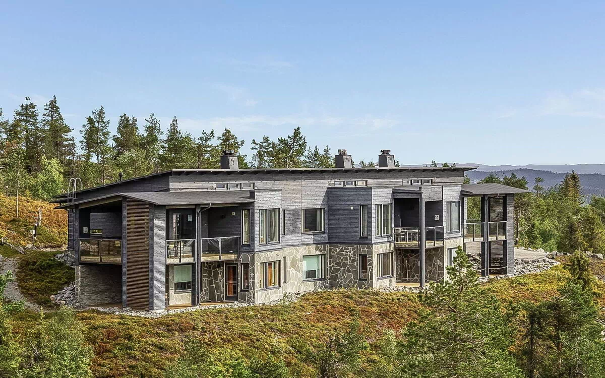 Upstairs: two bedrooms with 2 beds/bedroom. Downstairs: two bedrooms with 2 beds/bedroom, also a room with 120cm-wide bed (this room is without window, but there is a door), and a room with 3 beds (this room is also without window, but there is a door). Beds can be combined together. Combined living room/kitchen, electric sauna. Totally 3 toilets and showers. Bed linen and final cleaning are included in the price. Apartment of a high level, located at the summit of Rukatunturi Fell, next to the Masto slopes, by crossing the Juhannuskalliontie road you can reach the Masto-slopes. The ski track is located in close proximity to. Apartment is in a rocky and cliffy surroundings.