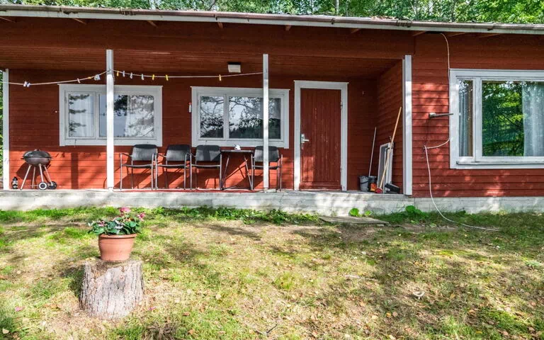 56 km south of Savonlinna. Lake Saimaa/Pihlajavesi 15 m, shallow water, firm sandy bottom. Own boat. Wooden cabin 1980, renovated 1991, kitchen, living room with sofabed, bedroom with 2 beds which are joined together (can be separated), shower room, open veranda. Separate lakeside sauna, dressing room.