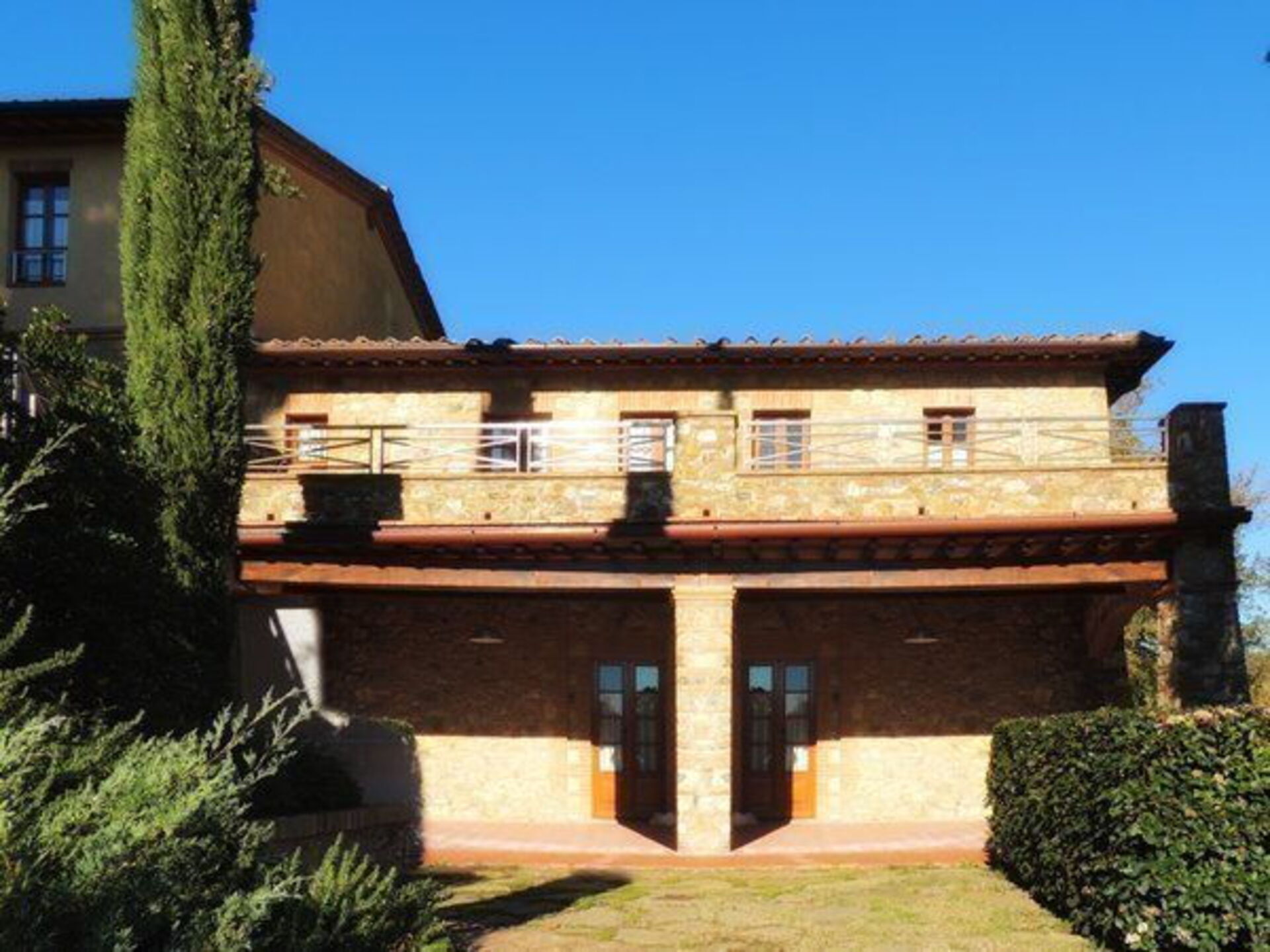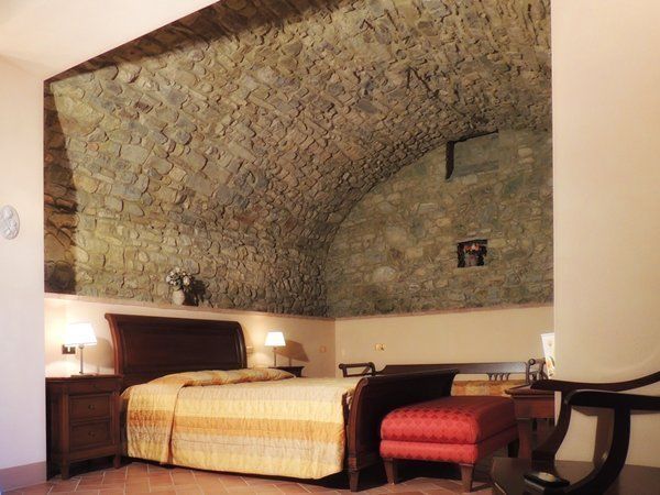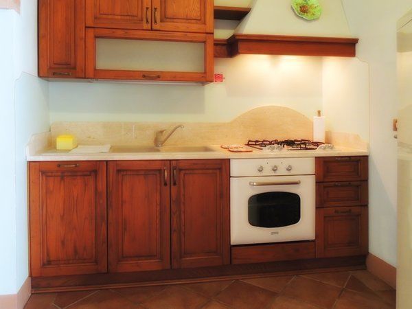 Apartment Ginestra 92 m². 4 persons. Situated on the ground floor of a old stone house detached from the U-shaped central building of the resort, has got typical tuscan furnishings. Independent access from the large living/dining room with satellite tv, double sofa-bed and 1 extra single bed (bookable at an extra price), exit to external area, connected to full equipped kitchen (4 hotplates, oven, dishwasher, fridge), two bedrooms (one with a double bed and exit to external area, one with two twin beds), one bathroom with wc, bidet and shower. Roofed private terrace with table and chairs. Independent heating.