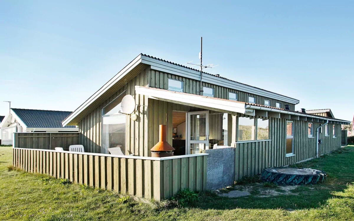 Large and spacious holiday cottage with sauna located in scenic surroundings in the small fishing village Nr. Lyngby approx. 5 km from the as well Lønstrup as Løkken and a short distance from the beach. The house is 119 m² incl. the mezzanine and therefore has plenty of room for a large family or two families wishing to spend their holiday together. There is a large living area with kitchen/living room in open concept, 4 bedrooms, 2 with double beds, and a mezzanine with 2 mattresses and bathroom with sauna. The house also has a small sea view. There is a small covered terrace and an open terrace around the house to both east, south and west. The house sits on an open plot in a quiet area, and there are good opportunities for both children and adults to have fun outdoors. For children there are swings and sandbox.