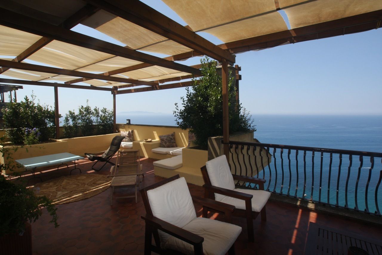Large living room with dining area, very large terrace (150 sqm) , large kitchen with 2 refrigerators, microwave, traditional oven.