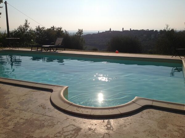 [English translation courtesy of Easy Reserve] We stayed at Villa Scianellone for a week and enjoyed it very much. The villa is quietly situated on a hill opposite Torrita di Siena. You can even see as far as Montepulciano from the beautifully located, somewhat aging pool. The villa itself is in a good and clean condition, even if the rooms have a little bit of light due to the small windows typical of an ancient villa. But that hardly matters because you are mostly on the terrace or by the pool or are out and about anyway. The very nice and helpful owners stop by every morning to clean the pool or even the grill. There is also WiFi, even if the speed is a bit slow ... on vacation you have more time anyway :-) All in all, we can recommend the villa to others.Vil du anbefale denne ejendom til en ven? Ja