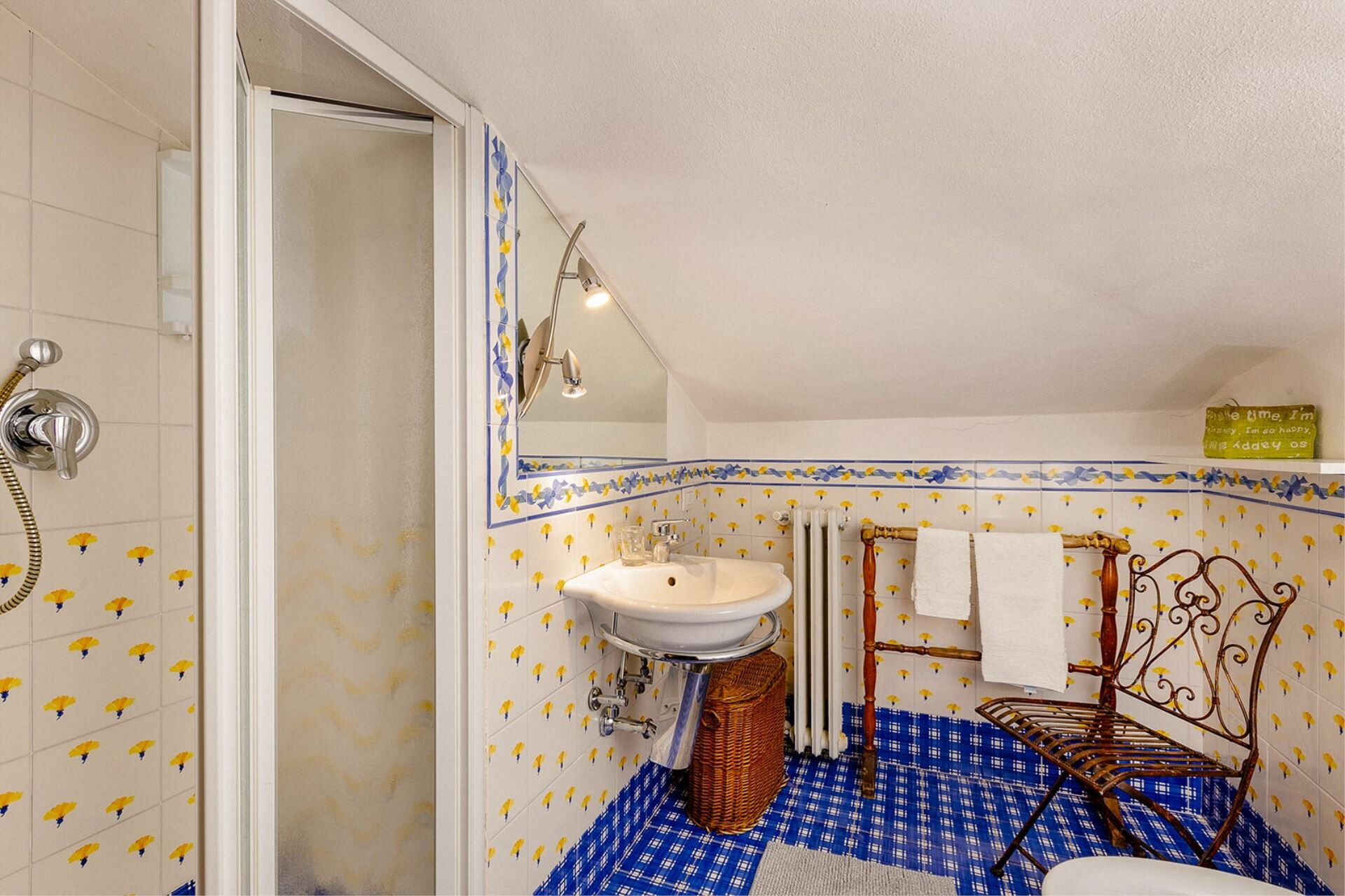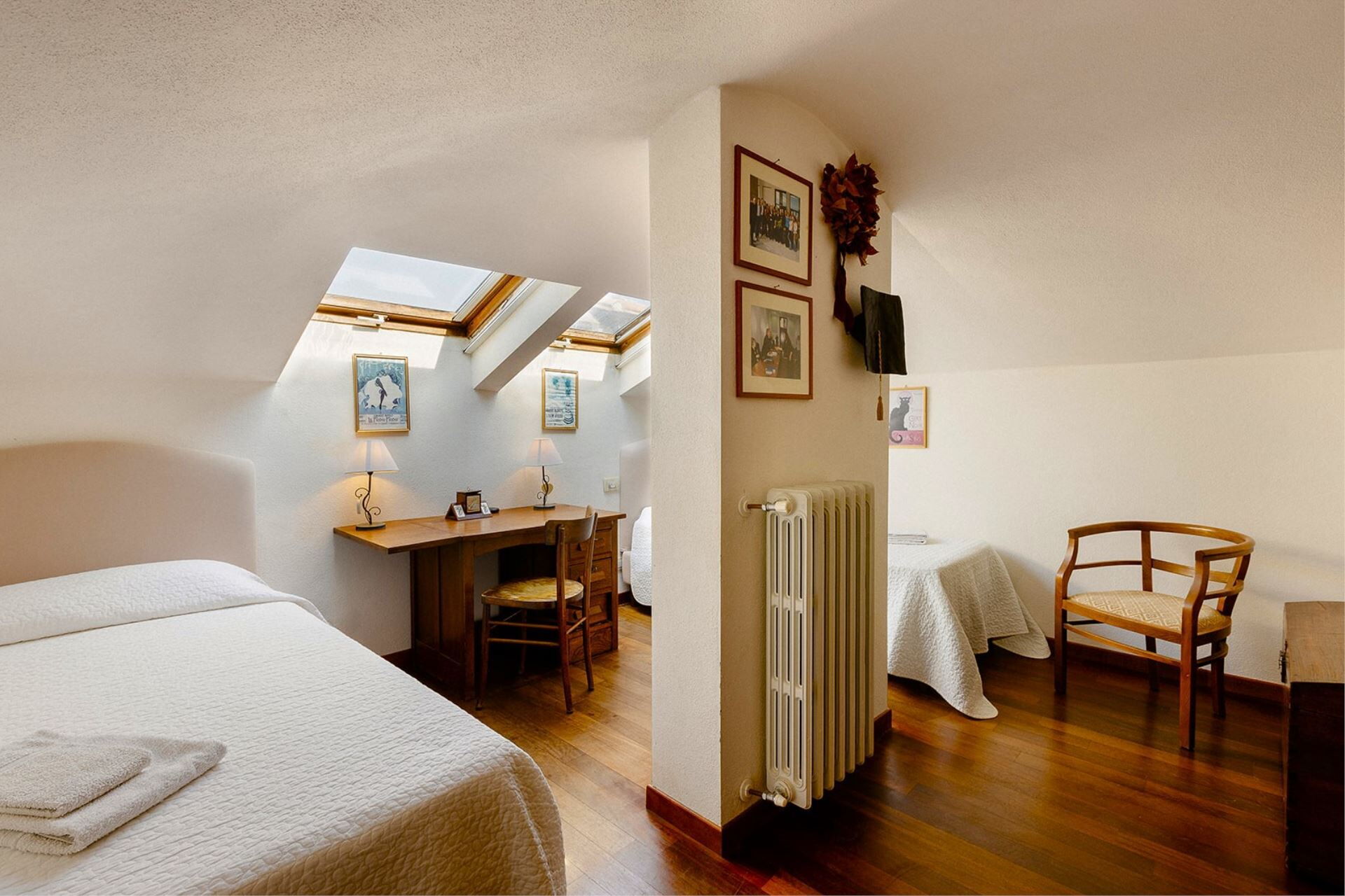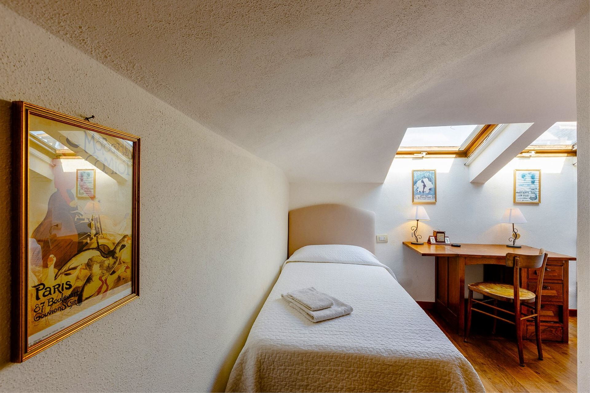 ATTIC: (high 1,20 m. – 1,80 m.) with access via internal wood staircase, twin bedroom, single bedroom, bathroom with shower.
