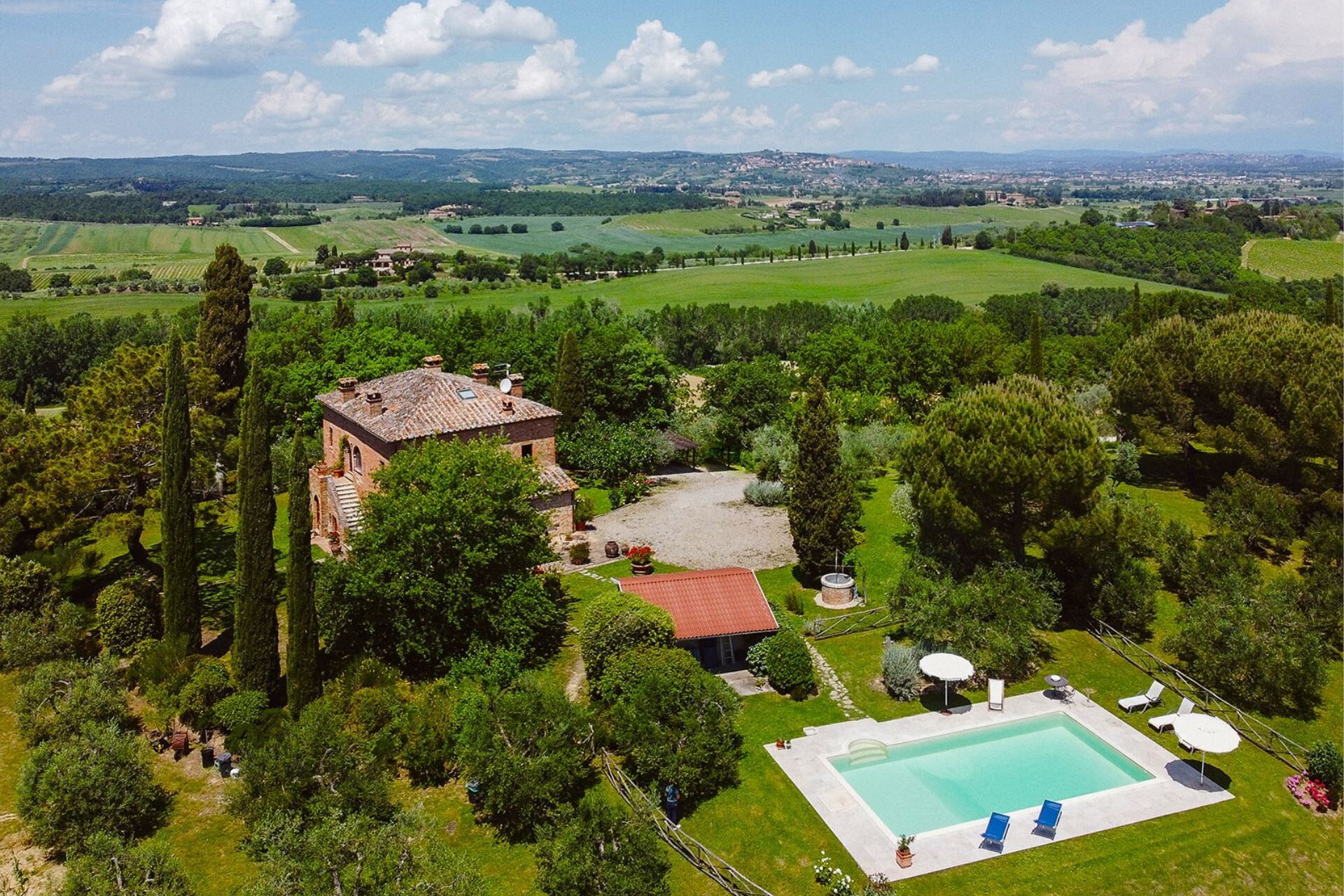 You will find Villa Scianellone 1.5 km from the town of Torrita di Siena, a characteristic and turreted medieval village. In the village you will find shops, restaurants and services of all kinds. If you like walking, the village can also be reached on foot, and we certainly recommend spending an evening there, for dinner out or for an aperitif in one of its ancient and particular piazzas.