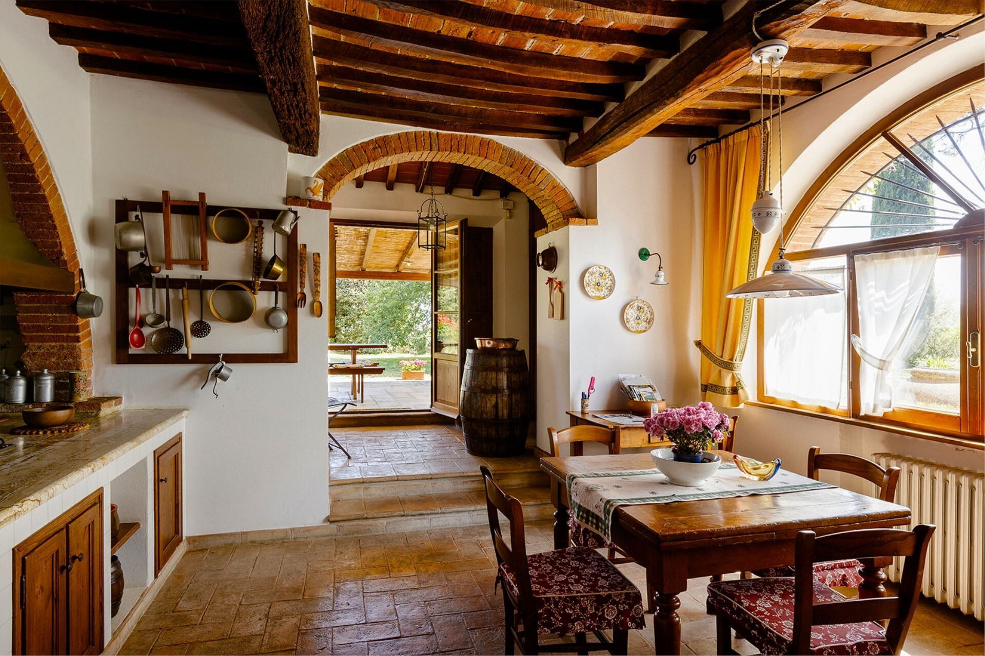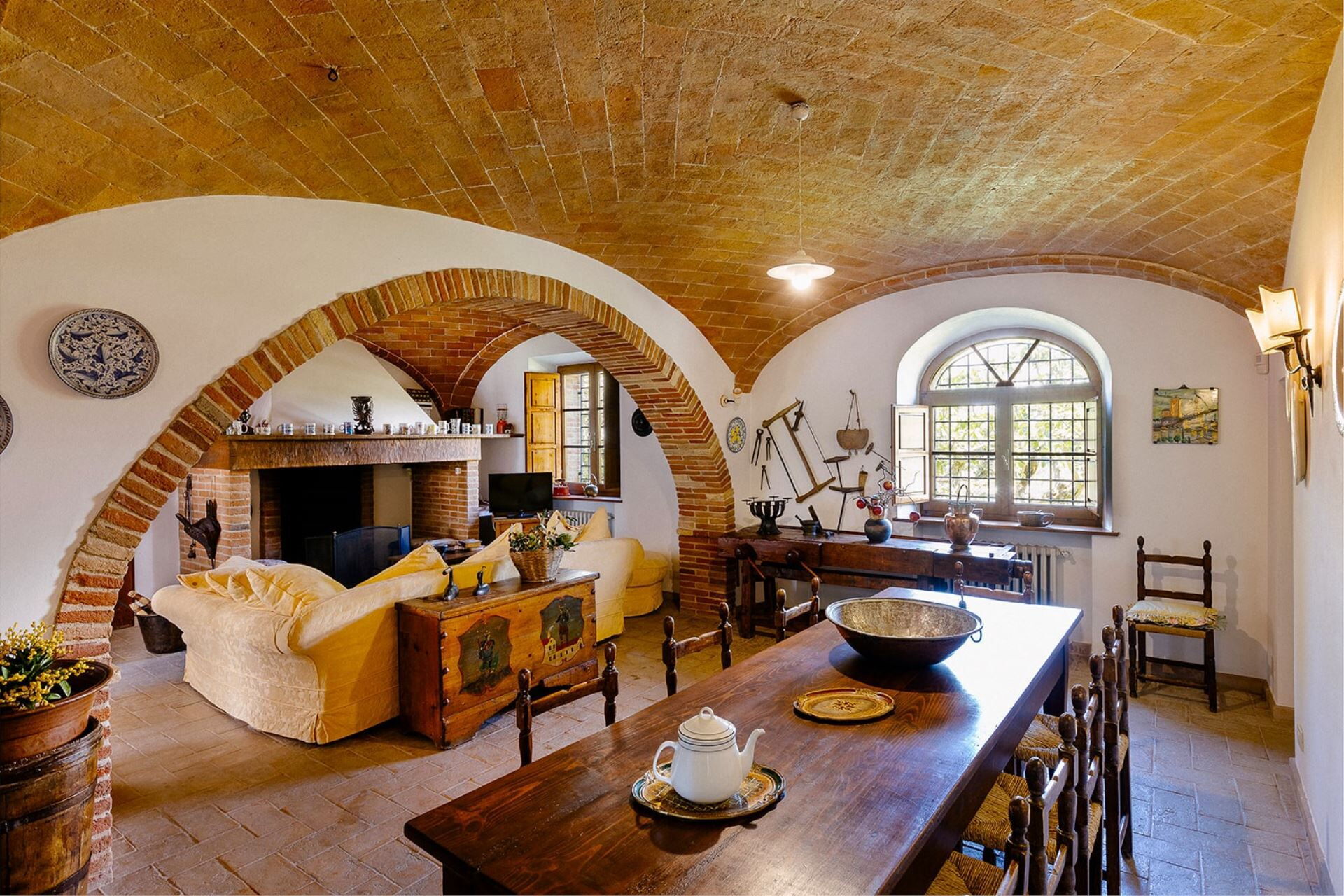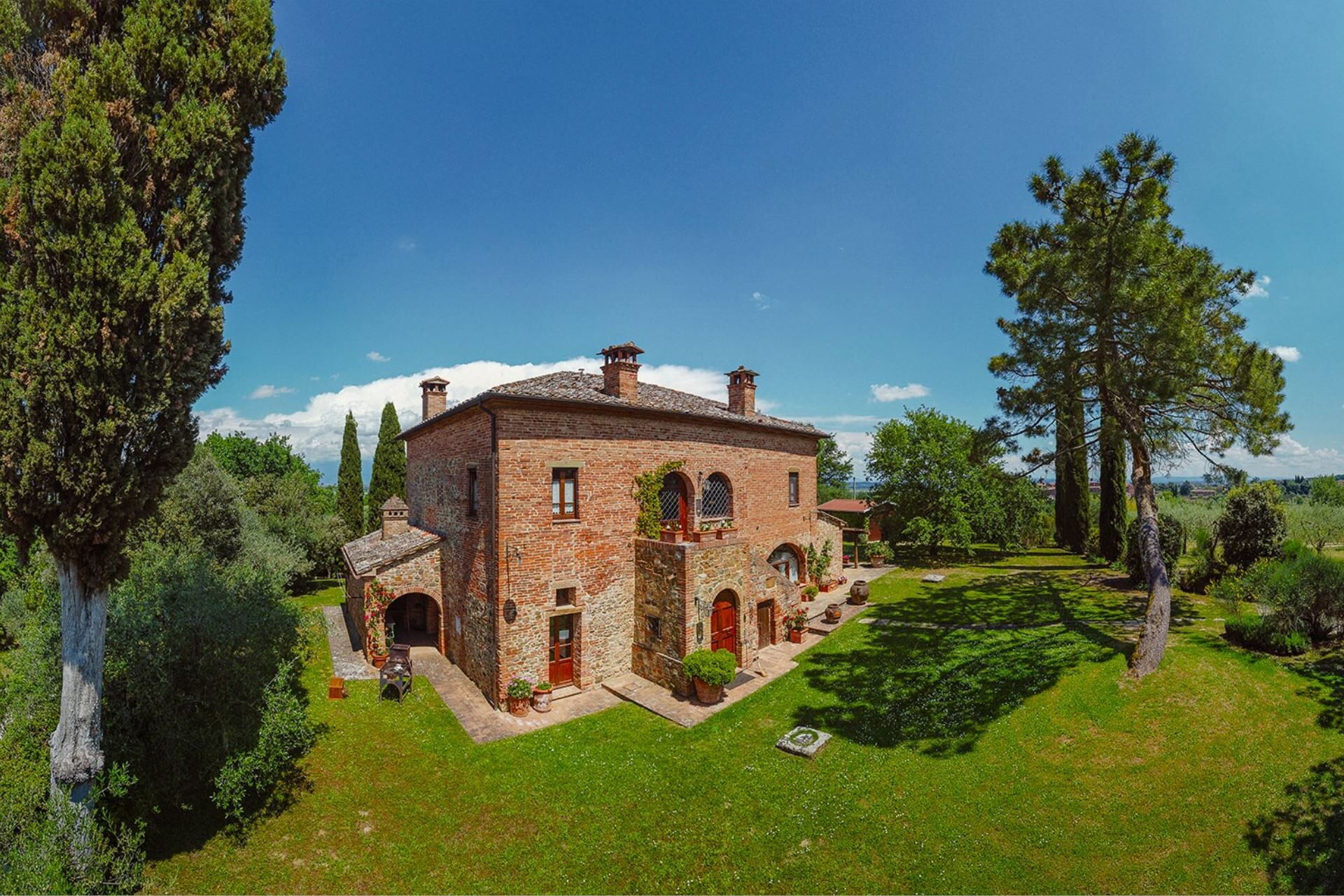 Villa Scianellone is an ancient stone and brick villa in a privileged, hilly and panoramic position. You will be able to fully experience a building whose origins date back to the 14th century and which preserves intact its original structure with its terracotta floors and brick arches, a plunge into the past, into the ancient Tuscan peasant traditions.