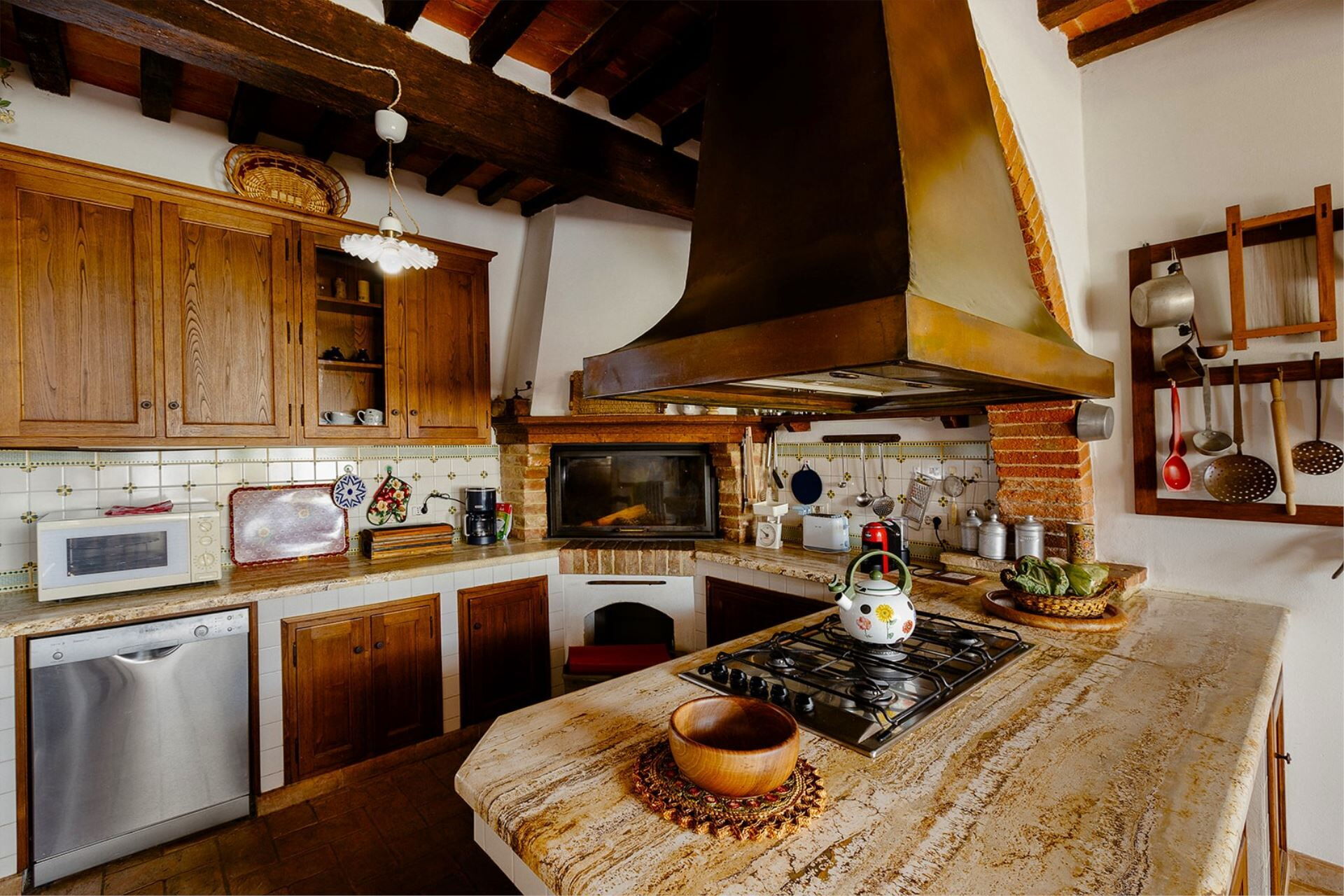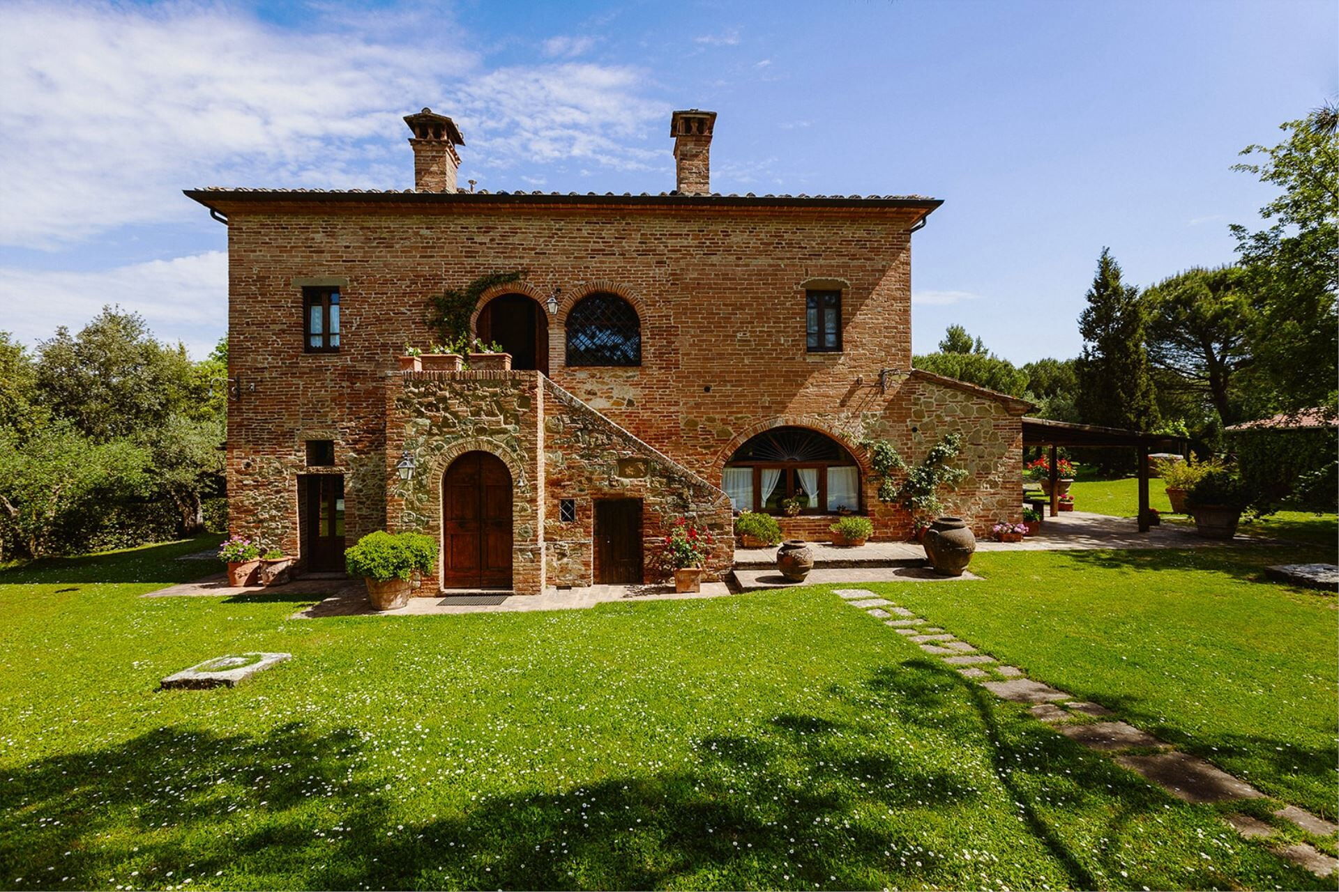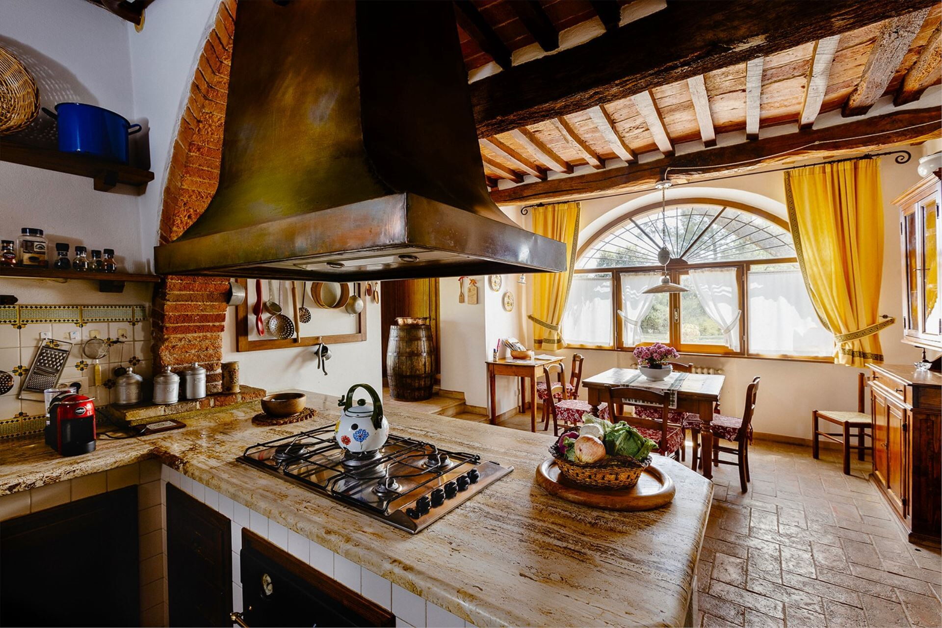 Villa Scianellone is an ancient stone and brick villa in a privileged, hilly and panoramic position. You will be able to fully experience a building whose origins date back to the 14th century and which preserves intact its original structure with its terracotta floors and brick arches, a plunge into the past, into the ancient Tuscan peasant traditions.