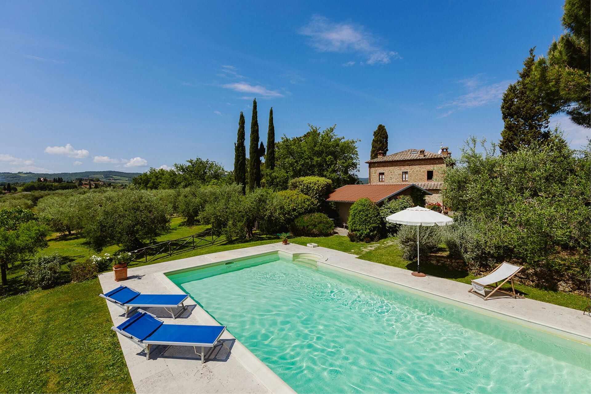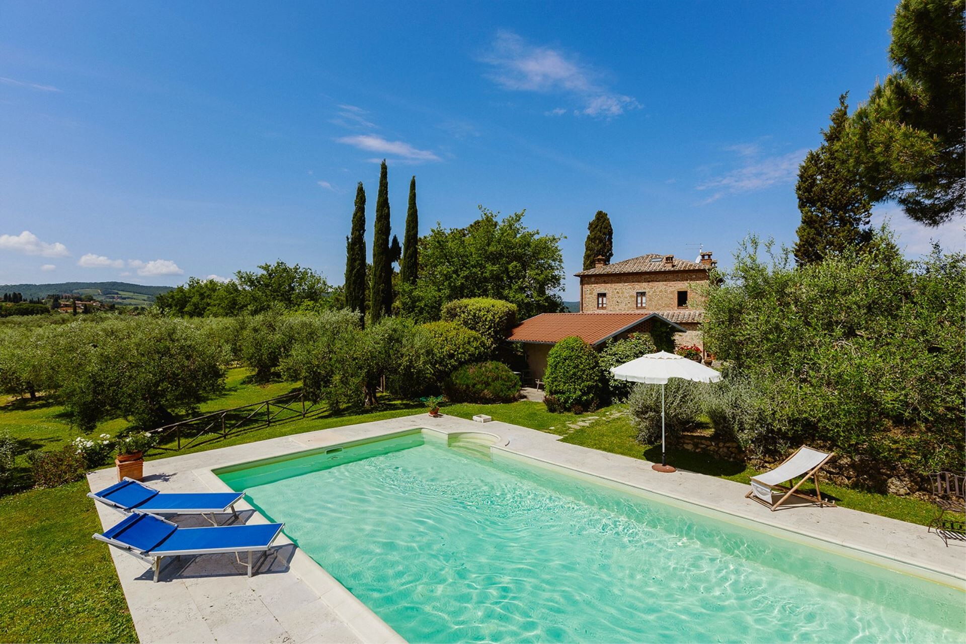 Villa très bien placée, au calme au milieu des oliviers avec vue panoramique sur Torrita di Siena et plus loin Montepulciano. Équipement complet. La piscine, le jardin et même le barbecue sont discrètement entretenus très tôt le matin. A noter que l'accès en voiture par un petit chemin n'est pas aisé.