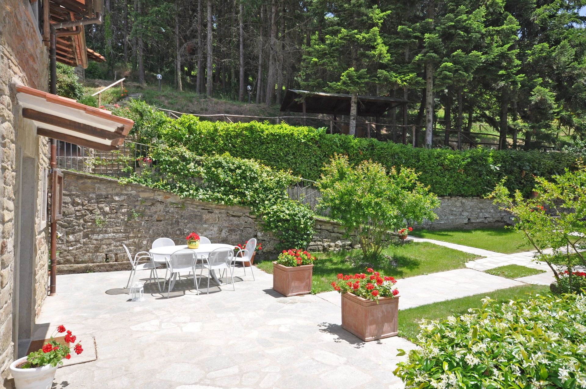 Udenfor kan gæsterne benytte sig af en velholdt have med et dejligt havepavillon i skoven i nærheden (ca. 20 meter fra villaen) og en smuk privat pool.