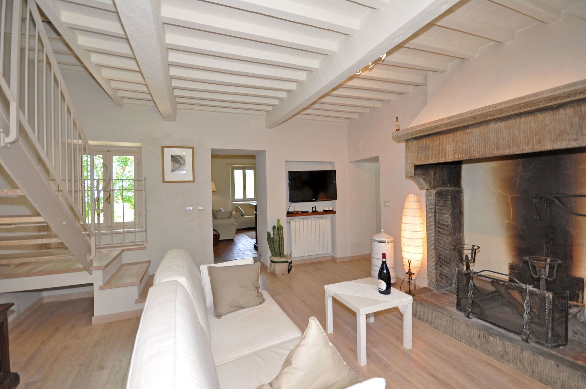 Første sal: stue (satellit-tv) med pejs og dobbelt sovesofa (stuen er også tilgængelig udefra), dobbeltværelse med eget badeværelse med bruser, dobbeltværelse, badeværelse med bruser , dobbeltværelse (konvertible til et soveværelse med dobbeltseng), badeværelse med badekar.