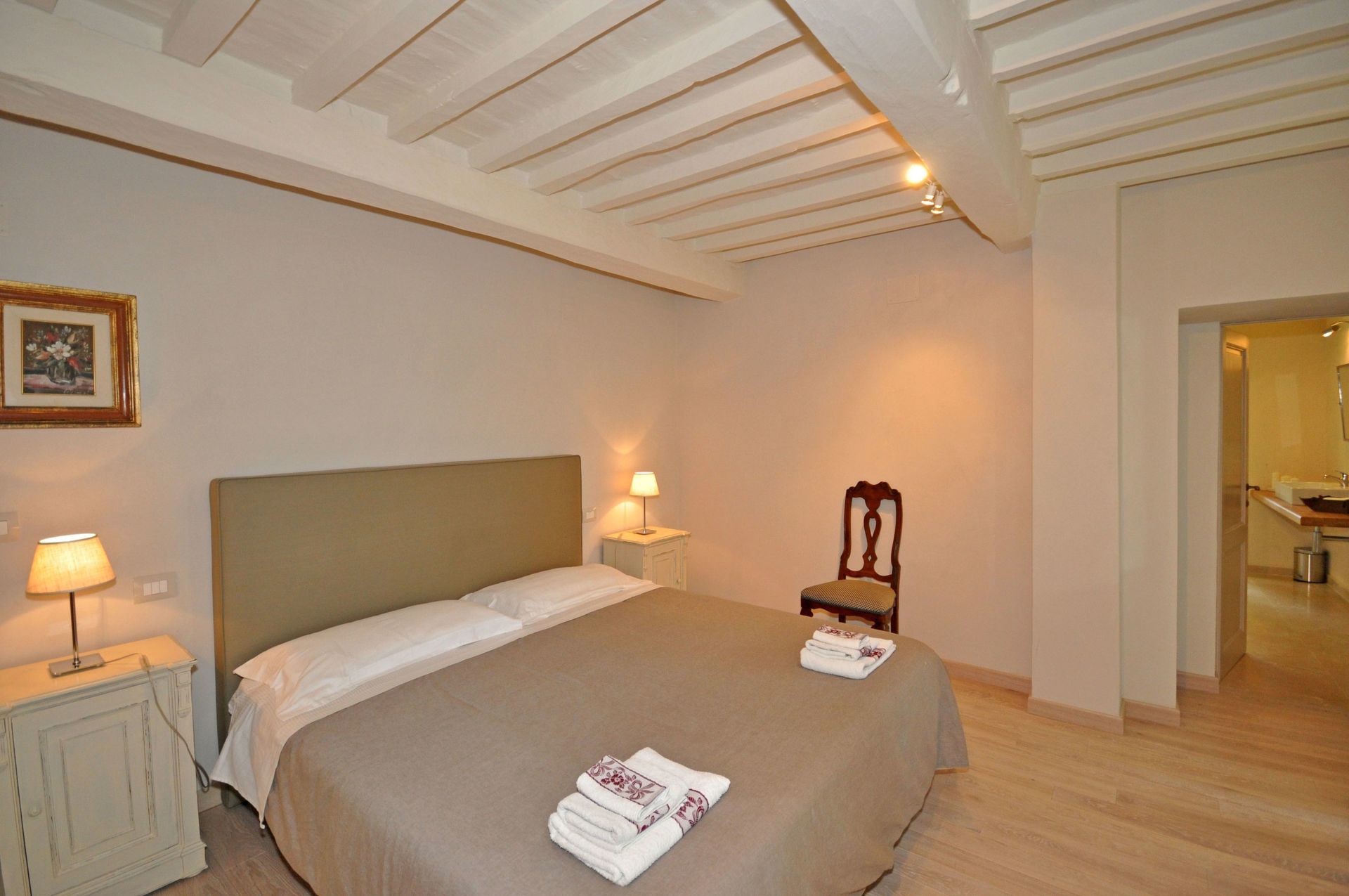 Afstande: den lille landsby Portole med dagligvarer er 4 km, Cortona med butikker af alle slags 13 km væk, Città di Castello 40 km, Arezzo 40 km væk, Lake Trasimeno 30 km væk, Camucia (med togstation ) 15 km væk, Perugia (S. Egidio lufthavn) 60 km væk, Siena 75 km, Firenze 120 km væk.