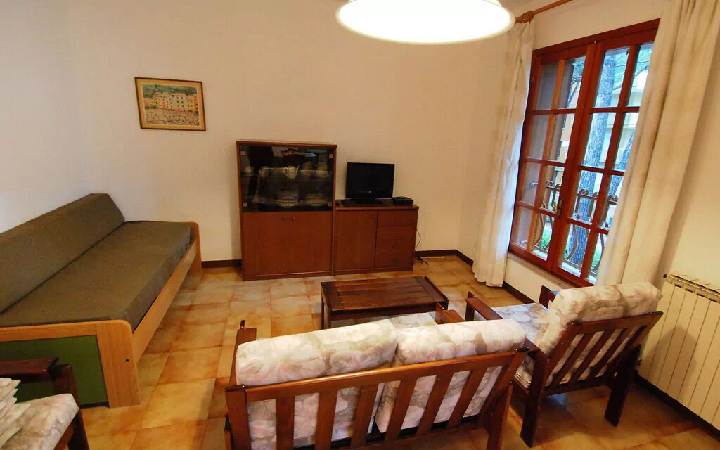 4-værelse-lejlighed 80 m2 i 1. etage. Emner egnet for 6 voksne + 2 børn. Lys, hensigtsmæssig og komfortabelt indrettet: stue/spisestue med 1 dobbelt sovesofa og TV. Udgang til terrasse. 1 værelse med 1 dobbeltseng. 1 værelse med 3 senge. 1 værelse med 1 seng. Kogeniche (4 kogeplader, mikroovn). Bad/bidet/WC, særskilt toilet. Klimaanlæg (ekstra). Intet opvarmningsalternativ. Udsigt over have. Til benyttelse: vaskemaskine. Parkeringsplads (1 Bil). Bemærk venligst: ikke-ryger hus. 1 husdyr/hund tilladt.