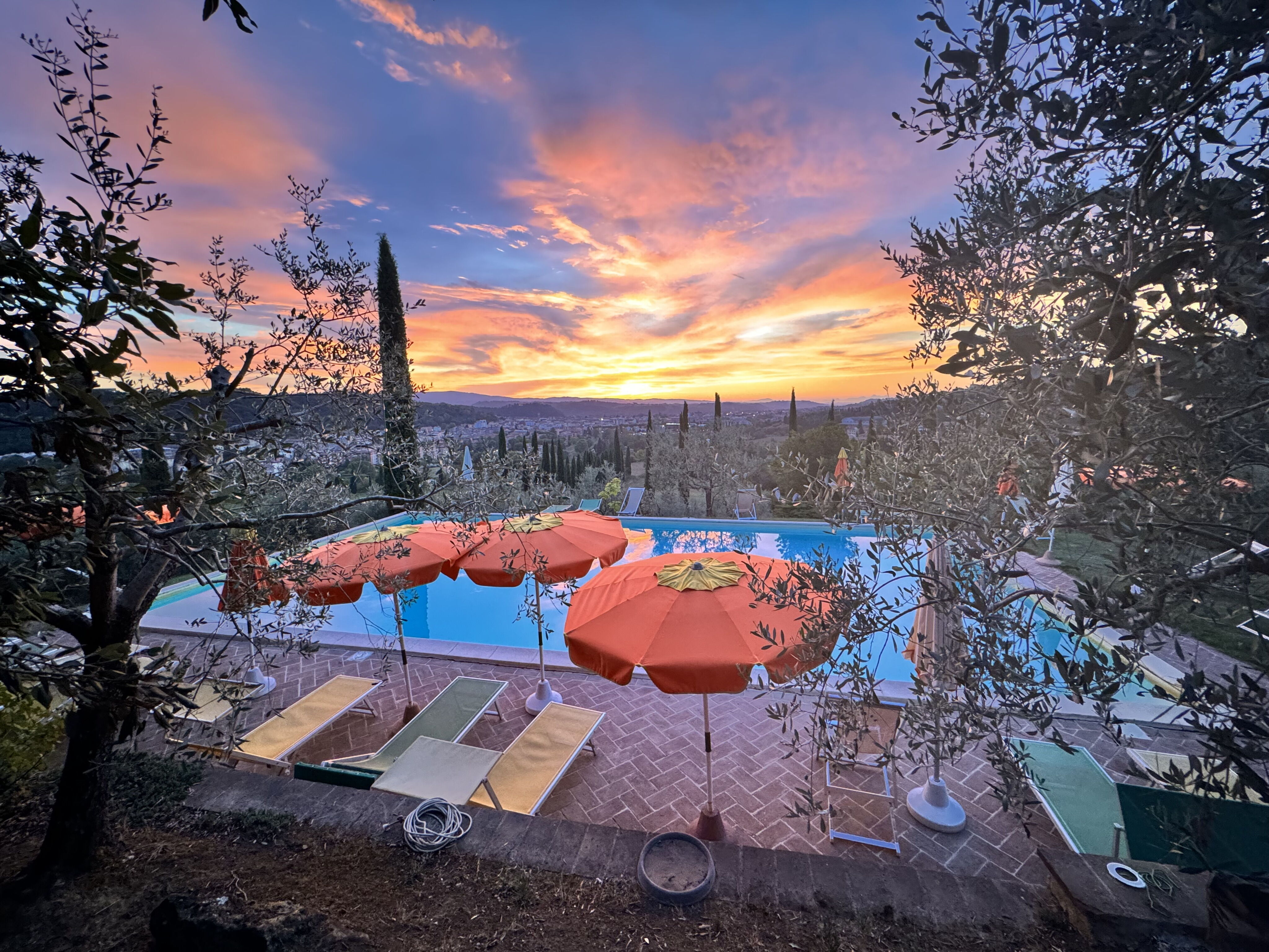 Indkvartering opdelt i enheder med WIFI, pool, TV, gårdhave, panorama udsigt, nær ved San Gimignano