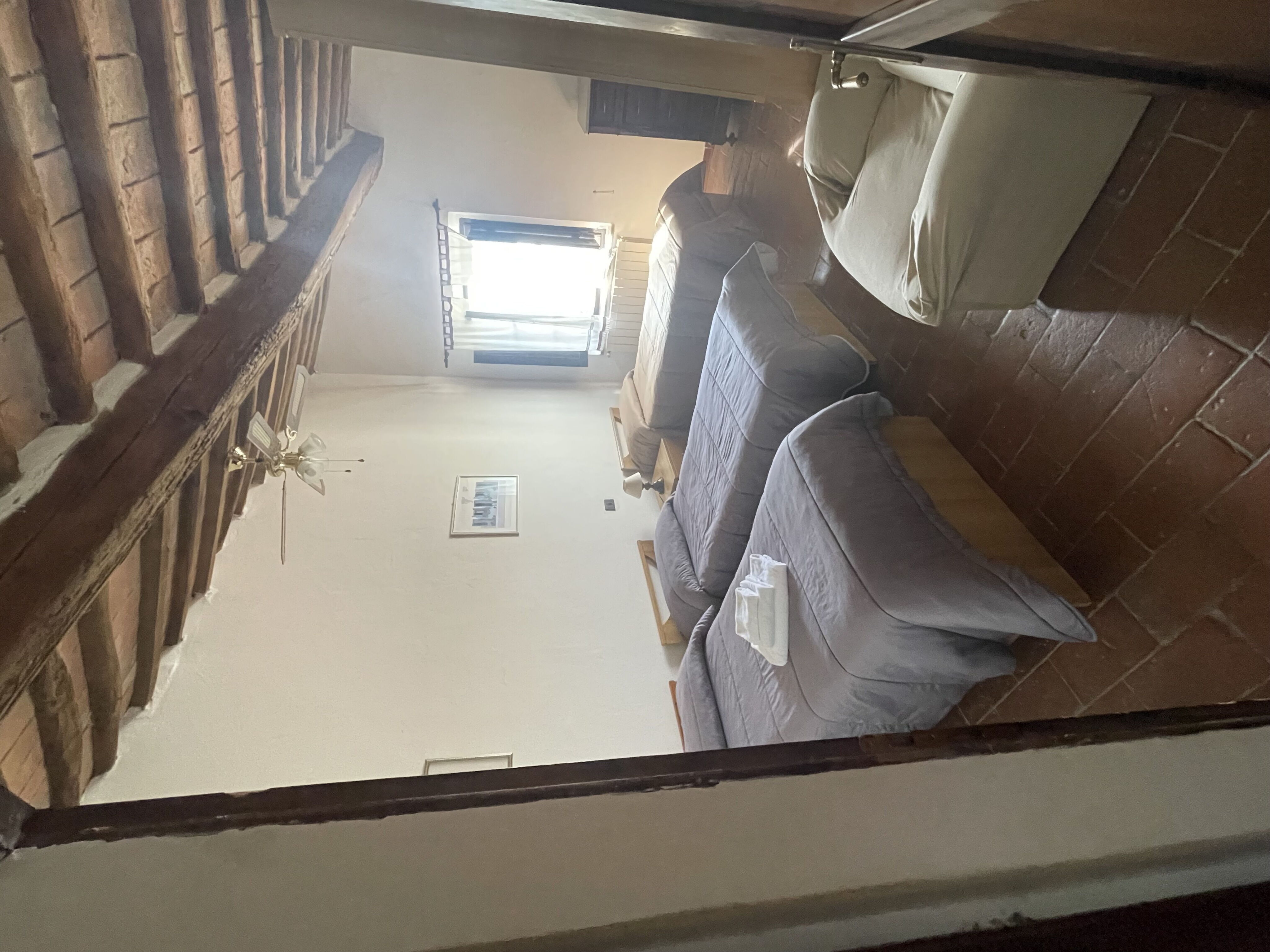 Soveværelse 2: tre enkeltsenge, loftsventilator.
