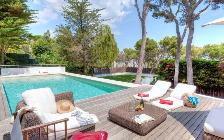 Torre Valentina 1 km from Sant Antoni de Calonge: Child friendly, modern house. In a sunny position residential area (villas), area with little traffic, 200 m from the sea. Private: garden (fenced) with lawn, swimming pool (9 x 4 m, depth 110 - 190 cm, 01.05.-31.10.) with internal staircase. Public parking on the road. Supermarket 1 km, restaurant, bar 300 m, sandy beach "Torre Valentina" 200 m. Sports harbour 6 km, golf course 9 km, tennis 2 km, riding stable 12 km. Nearby attractions: Waterpark Aquadiver 6 km. Groups of teenagers on request only.