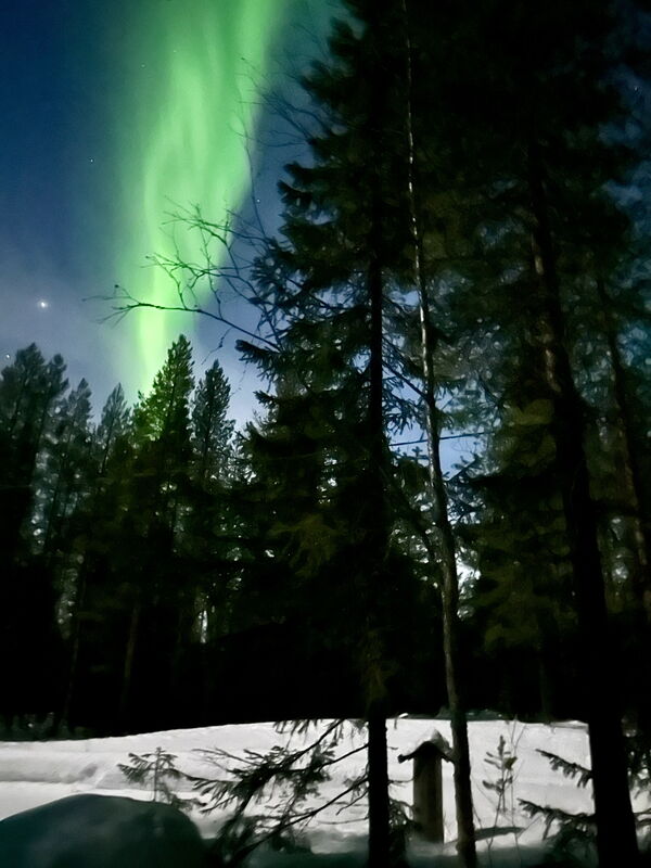 [English translation courtesy of Easy Reserve] "Amazing! Our expectations were far exceeded. The house wasn't newly built last year, but the furnishings are immaculate (except for the armchair, but that's okay). All the furnishings and utensils (e.g., in the kitchen) work and are clean! (And I'm really picky about food preparation). Check-in was easy, and plenty of firewood was provided. The accommodation is easily accessible yet secluded in the forest. We would definitely recommend this part of Lapland, as you fortunately don't encounter all the typical tourists here.