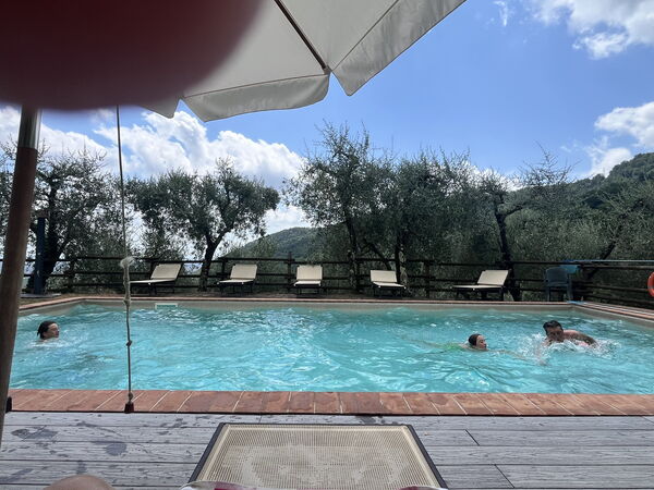 [English translation courtesy of Easy Reserve] We had a wonderful time at Villa La Piana. The view from the terrace across the distant sea is beautiful, the pool is very refreshing, and the grounds are well-maintained and lovingly landscaped. Inside, there's a small, well-equipped kitchen, a small bathroom, two bedrooms, and a large living room. At night, you only hear the cicadas. It's just a few minutes' walk to Pedona, where you can buy essentials in a small shop, get an ice cream, or go out to eat in the evening. By car, you can reach the beach in 20 minutes and also get to Pisa and Luca quite quickly. Riccardo, the host, was incredibly friendly and accommodating, took care of the pool once a week, and even brought us a small breakfast. We were absolutely delighted and would come back anytime!Vil du anbefale denne ejendom til en ven? Ja