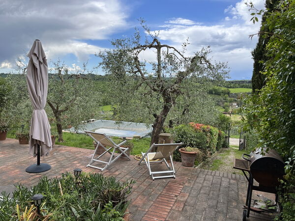 Fremragende 5 /5The property was perfectly placed for us to do day drops to some great Tuscan cities and towns. The position made discovering the region super easy. We were a group of 2 couples and the house was great for our group. We ate breakfasts and dinners at the house, and ate out every lunch. The two kitchens take some getting used to with a fridge in only one, and a dishwasher in the other. But we had all we needed. The outdoor space is fabulous and the views and setting are delightful.